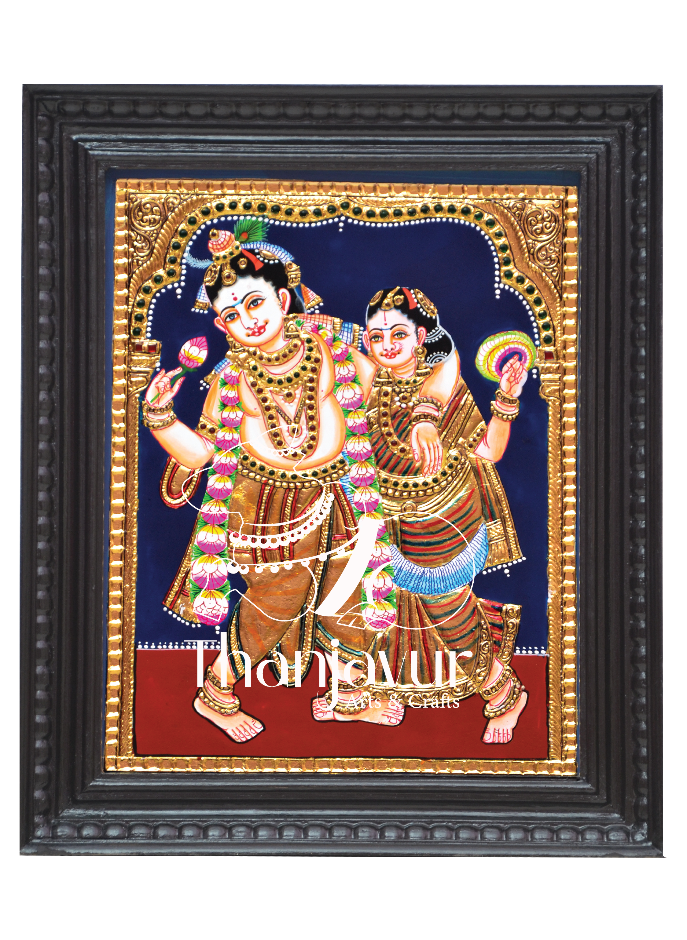 "This Tanjore painting beautifully captures the divine couple, Radha and Krishna, symbolizing eternal love, harmony, and devotion. Perfect for bringing peace and spiritual energy to your home.!"