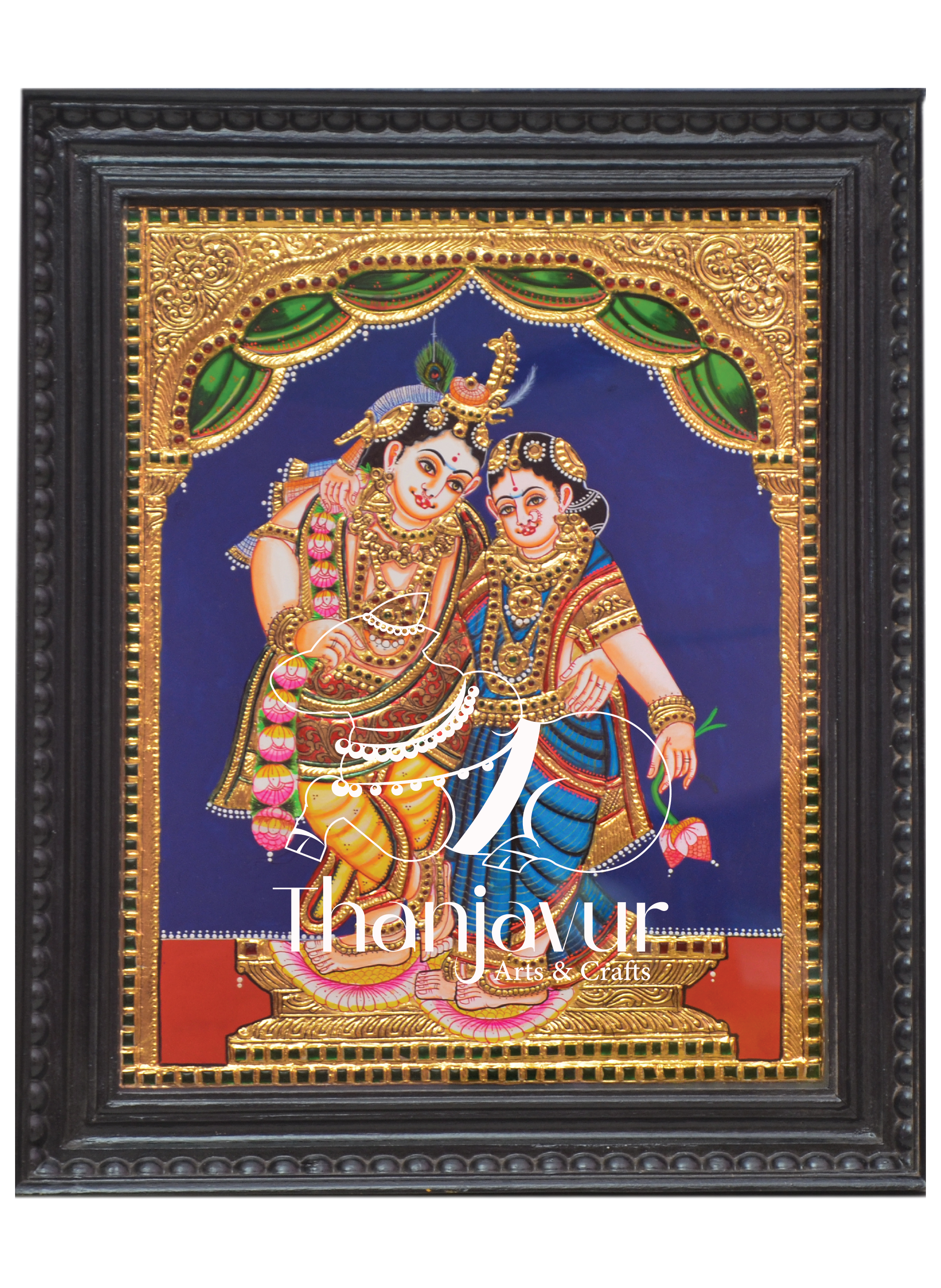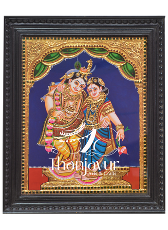 "Adorn your space with this captivating Tanjore painting of Radha and Krishna, set against a majestic purple background. It symbolizes eternal love, peace, and divine blessings.!"