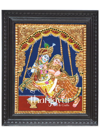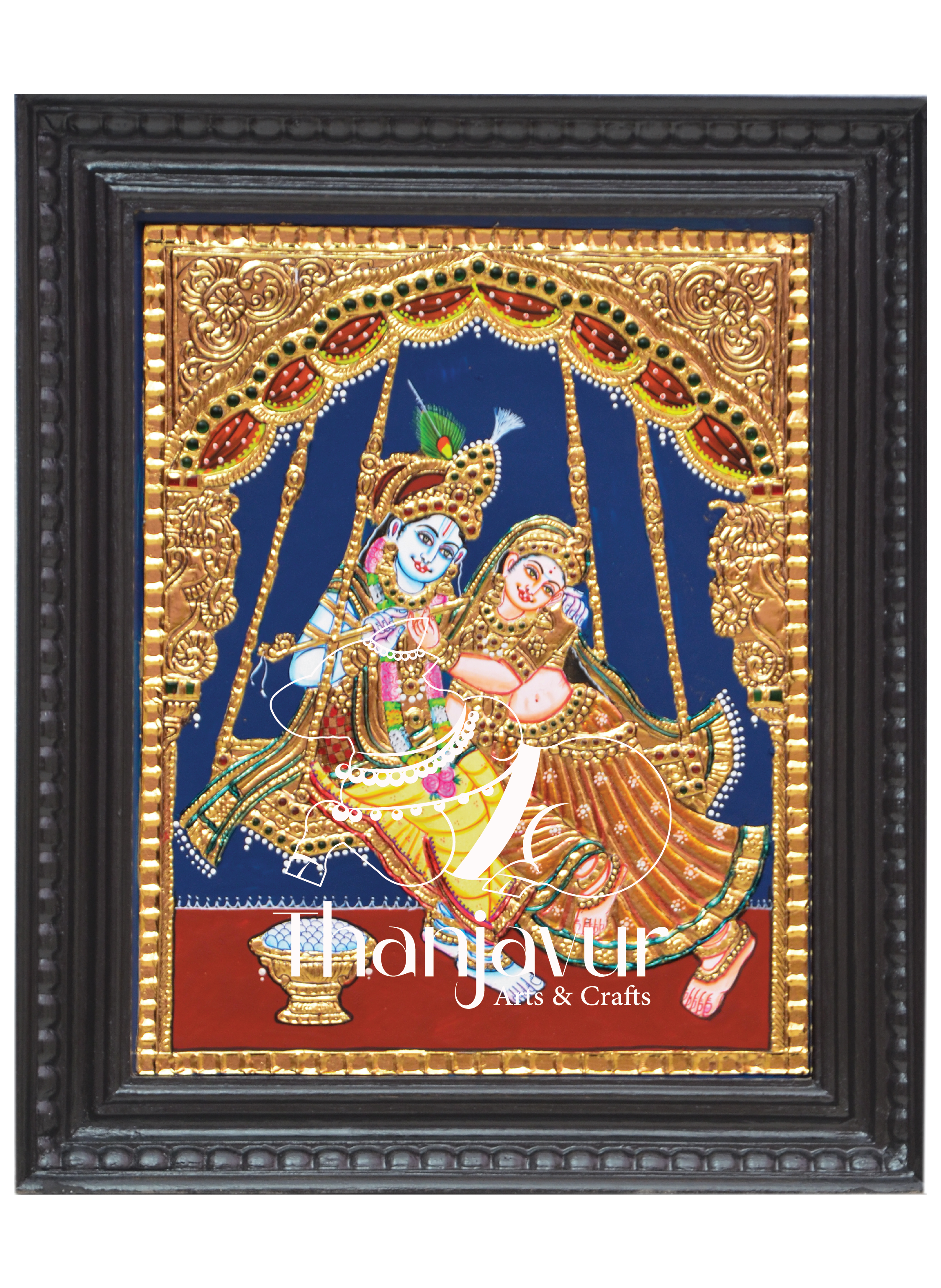 "Delight in the Playful Charm of Swinging Radhe Krishna through Enchanting Tanjore Art."