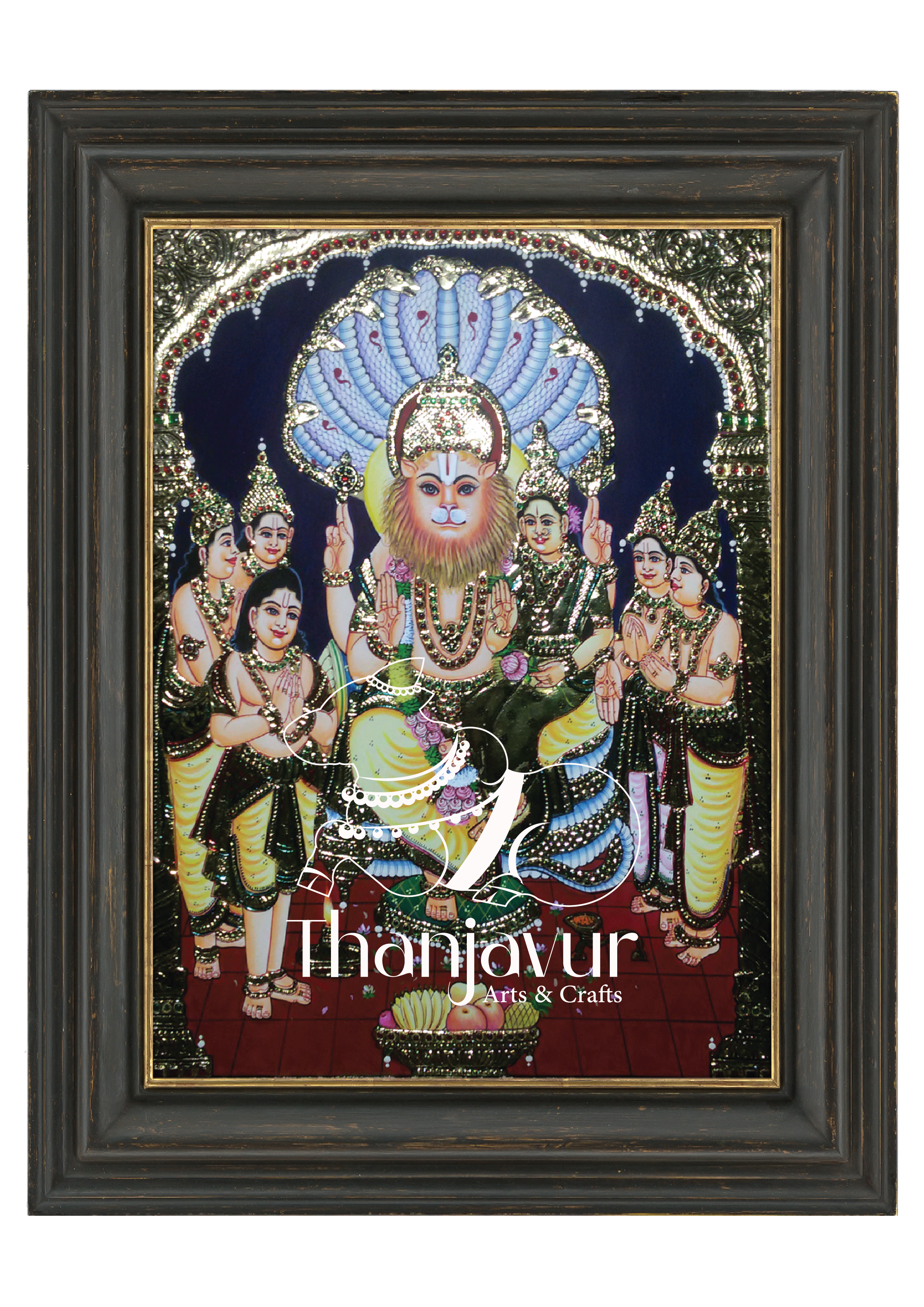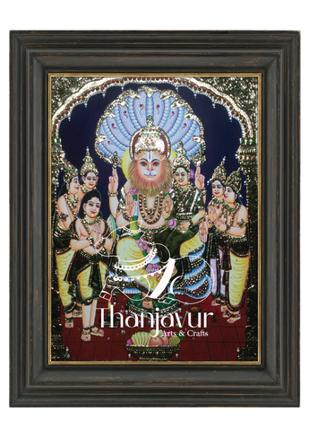 "Embrace the Divine Power of Lakshmi Narasimhar Swamy through Stunning Tanjore Art."