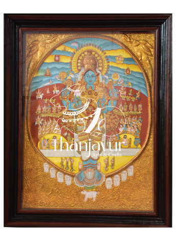 "Witness the Cosmic Glory of Lord Vishnu in His Majestic Vishwaroopam through Enchanting Tanjore Art."