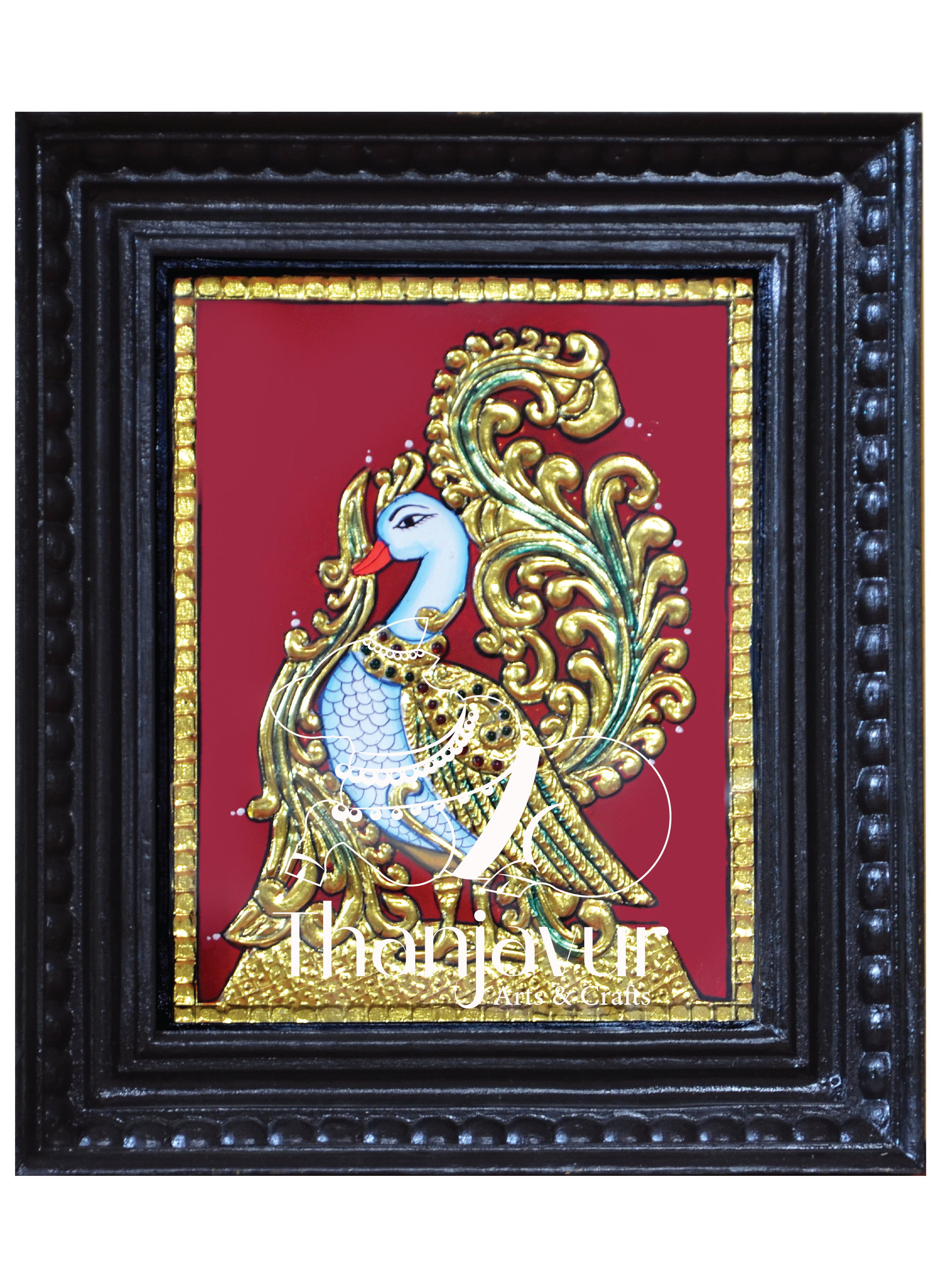 This peacock design Tanjore painting is a perfect addition to your living space, radiating positivity and artistic splendor. It also makes a thoughtful gift for loved ones, symbolizing joy and prosperity.