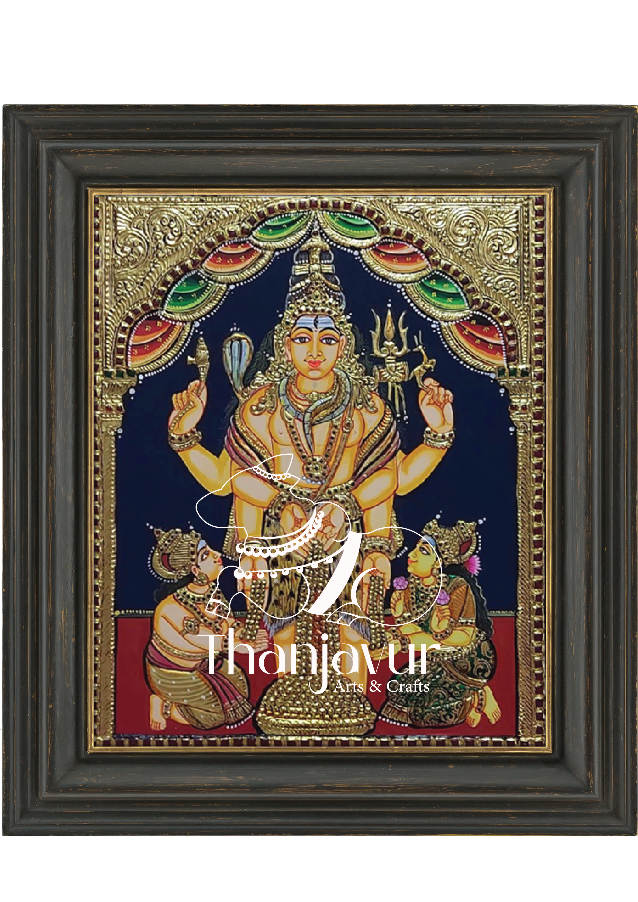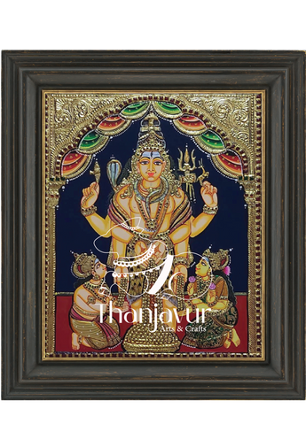 "Discover the celestial moment of Lord Shiva bestowing wealth and prosperity upon Guberar and Goddess Lakshmi. This intricately designed Tanjore painting symbolizes abundance, blessings, and divine generosity.!"