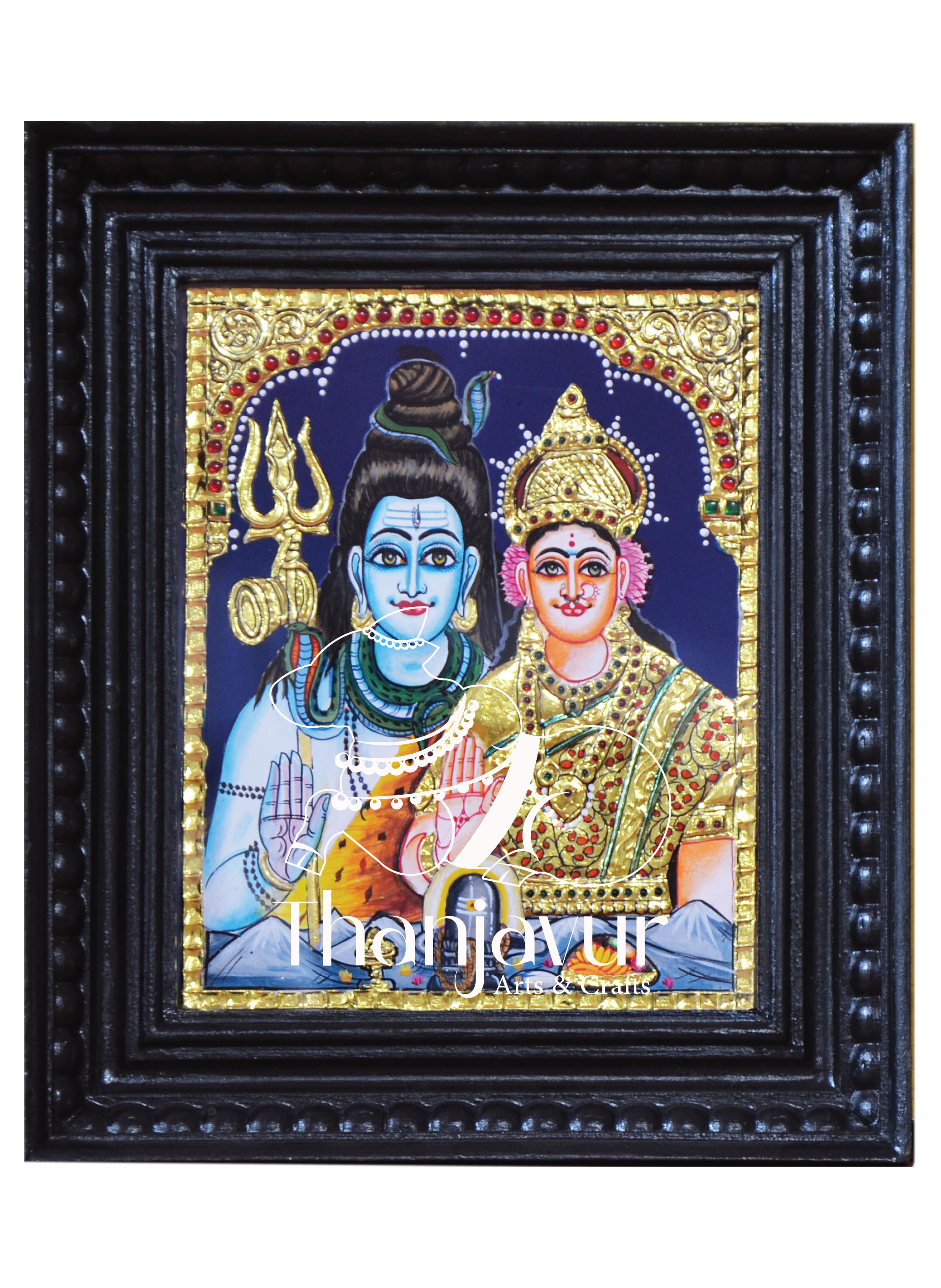 "Our Tanjore paintings capture the divine couple, Lord Shiva and Goddess Parvati, epitomizing love, power, and balance. This sacred artwork invites blessings of harmony, protection, and spiritual growth into your home.!"