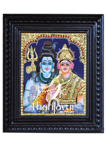 "Celebrate the Eternal Bond of Shiva and Parvati through Radiant Tanjore Art."