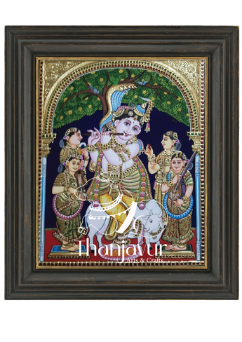 "Adore the Mesmerizing Melodies of Flute Krishna with Stunning Tanjore Art."