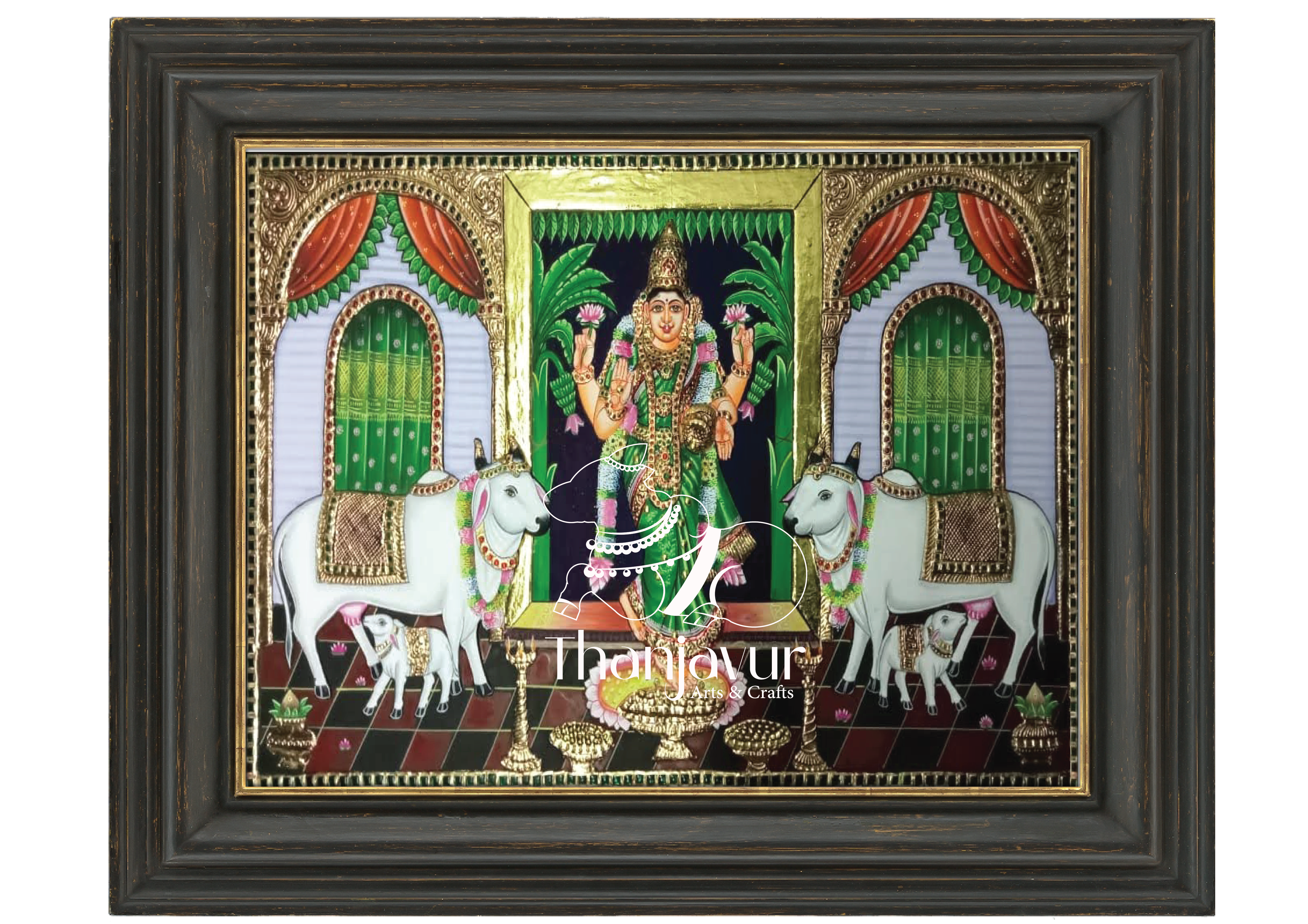 "Featuring Vastu Lakshmi alongside the sacred cow, this painting ensures harmony, prosperity, and positive vibrations in your space."